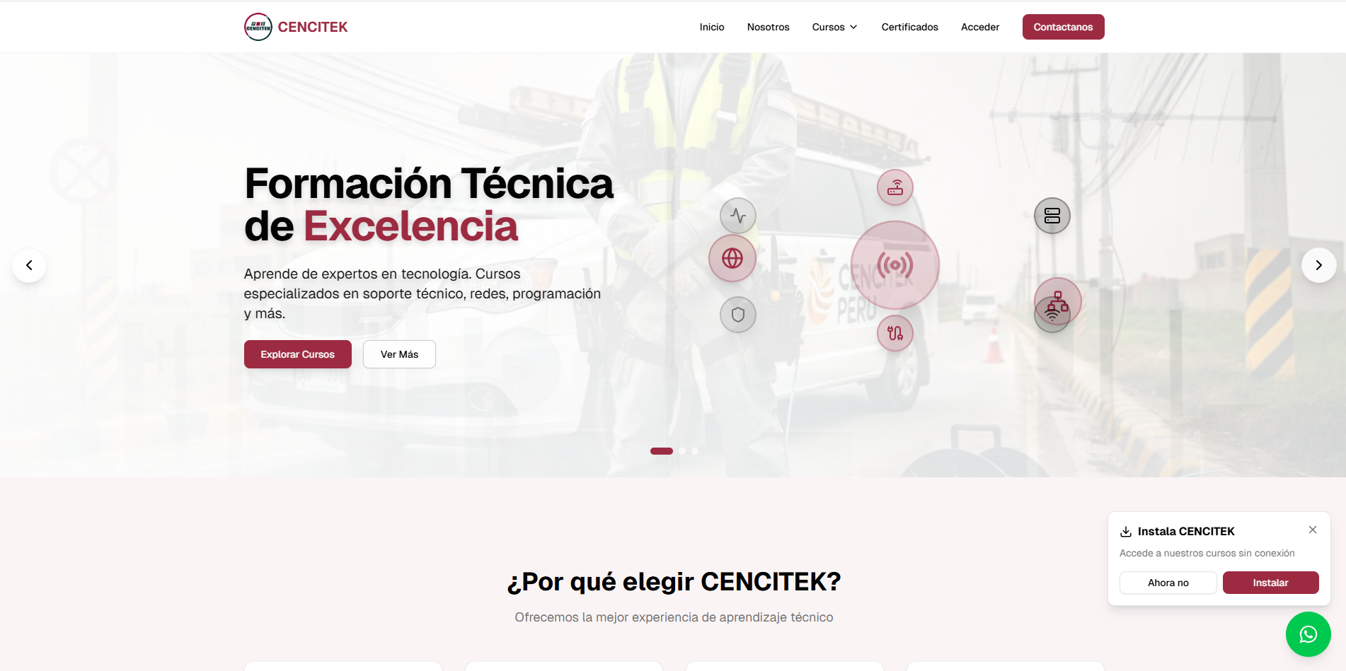 "Plataforma educativa de alto rendimiento con gestión de currículum, emisión automatizada de certificados y analíticas de progreso."